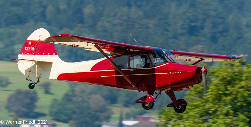 Die Aeronca 15AC Sedan mit der Seriennummer 15AC-371 (N1331H) wurde am 8. April 1949 erbaut. Im September 1981 wurde die Sedan bei einem Startunfall schwer beschädigt. Erst im Jahre 2005 und nach diversen Besitzerwechseln wurde der Restaurierungsprozess in der Schweiz begonnen. Es handelt sich um ein viersitziges Leichtflugzeug mit festem konventionellem Fahrwerk, das zwischen 1948 und 1951 von Aeronca Aircraft hergestellt wurde. Wie bei anderen Aeronca-Konstruktionen sind auch bei der Sedan der Rumpf und das Leitwerk aus geschweißten Metallrohren gefertigt. Das Fahrwerk der Sedan ist konventionell angeordnet, mit einem Hauptfahrwerk aus Stahlrohr und einem lenkbaren Spornrad. Angetrieben wird die Sedan von einem Continental O-300-A Motor mit 145 PS (108 kW).