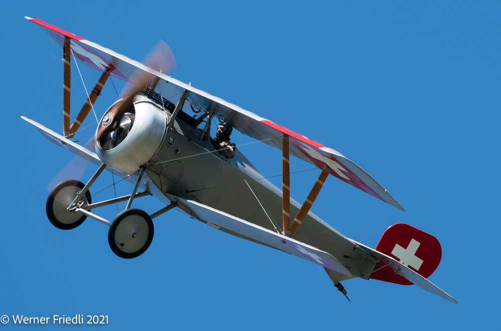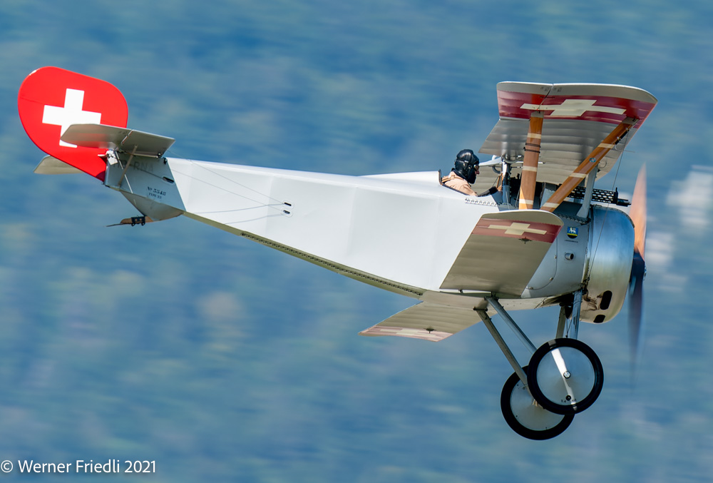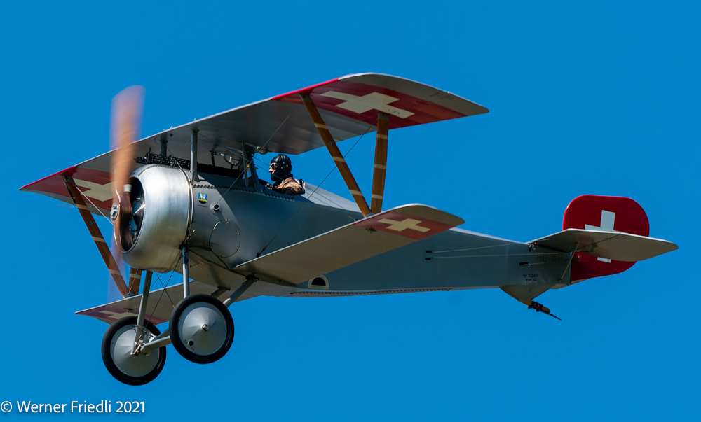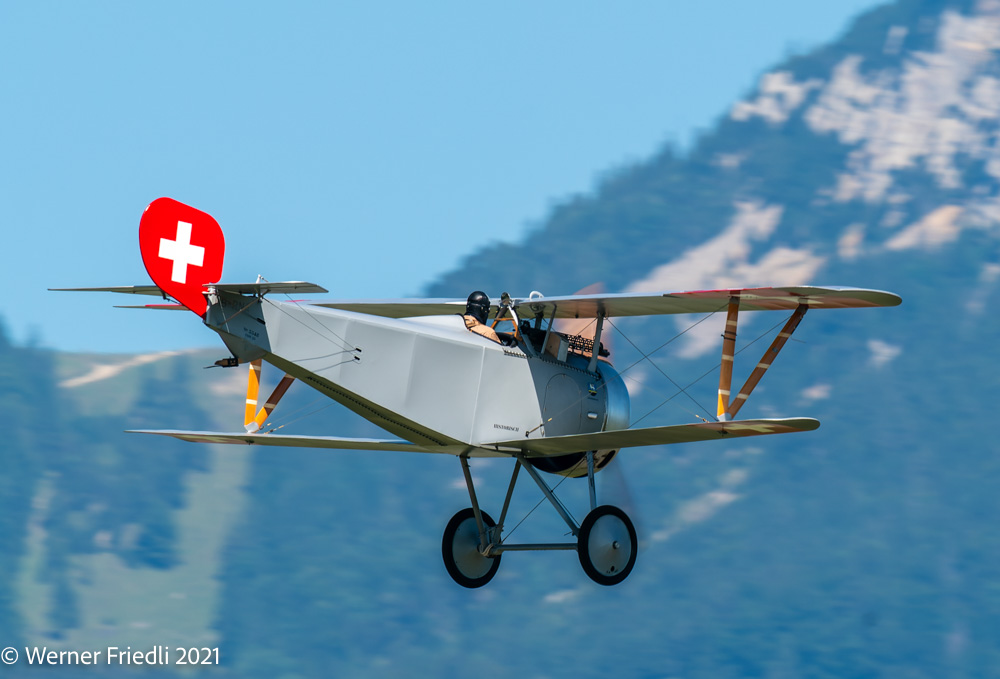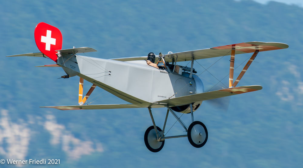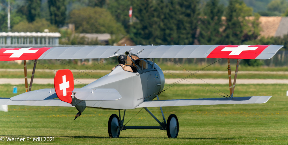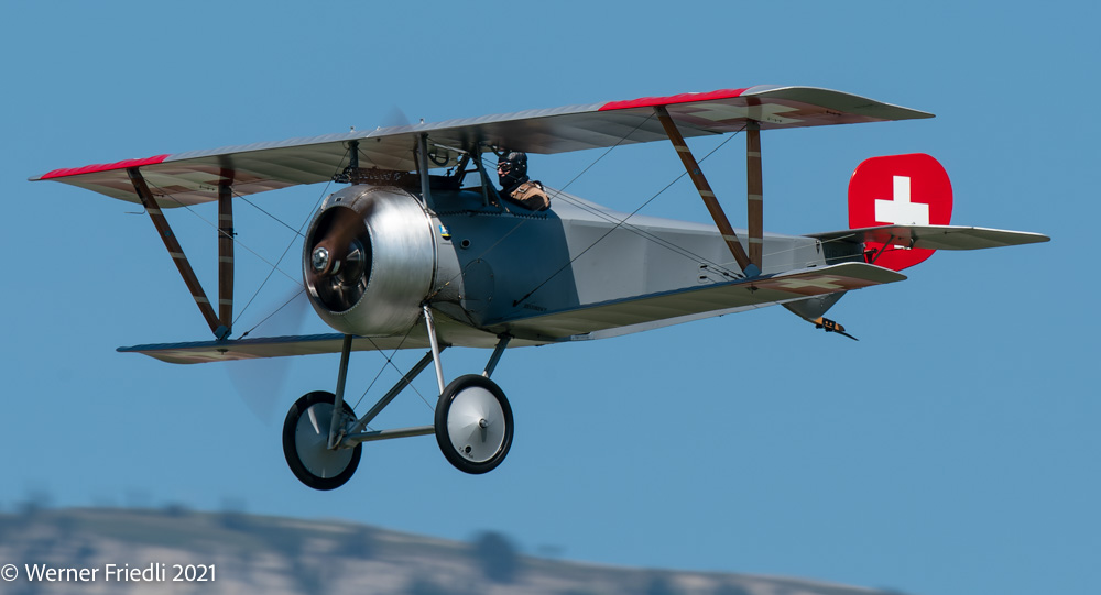 Einer der Höhepunkte der Air90 war der Flug der Nieuport 23 C-1, einer Replika aus dem Hause der Nieuport Memorial Flyers. Insgesamt sollen 3 dieser Replikas gebaut werden. Der Sound eines Umlaufmotors unterscheidet sich doch stark von normalen Kolbenmotoren. Entweder dreht der Motor mit Vollgas, oder der Pilot schaltet die Zündung aus. Dadurch entsteht eine besondere Geräuschkulisse. Die Maschine wurde durch Isidor von Arx gekonnt geflogen. Von diesen Flugzeugen wurden durch die Schweizer Fliegertruppen im Jahre 1917 fünf Stück beschafft. Damit ist die Nieuport 23 C-1 nun bezüglich der Konstruktion das älteste noch fliegende Exemplar eines Flugzeugs der Schweizer Fliegertruppen. Natürlich kein Original, wie die zwei noch fliegenden Dewoitine D.26, aber doch ein Nachbau, der dem Original alle Ehre macht.