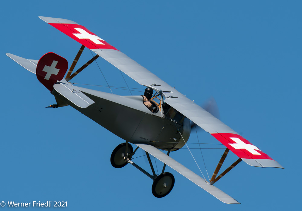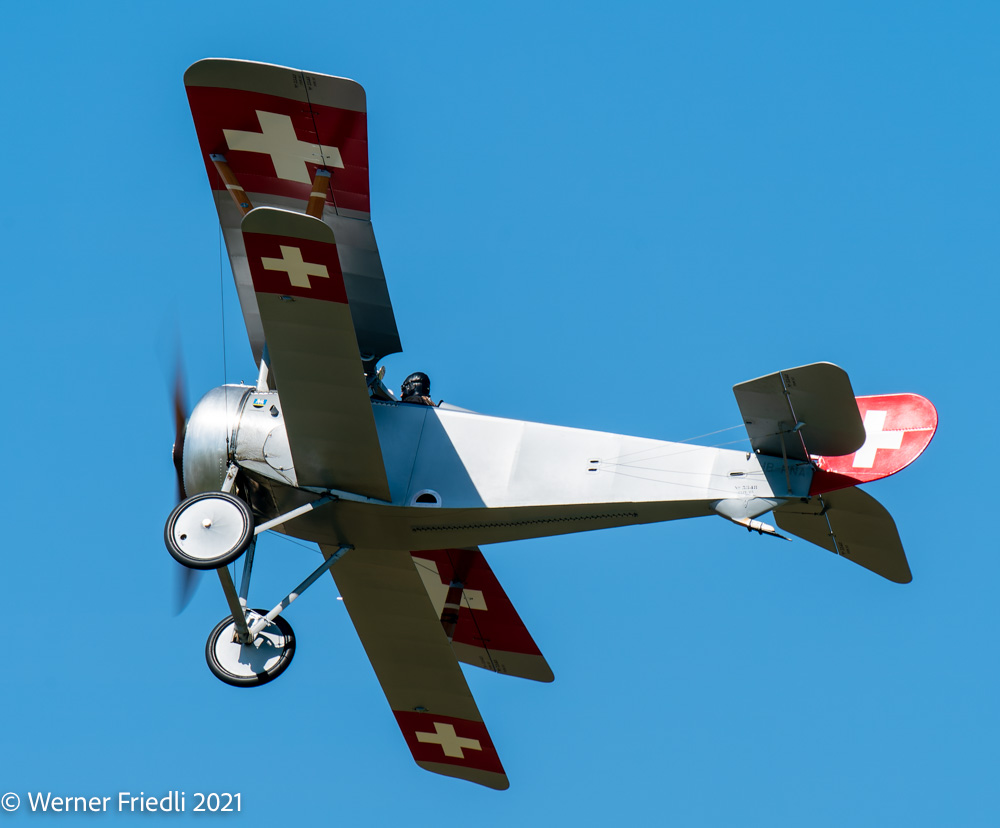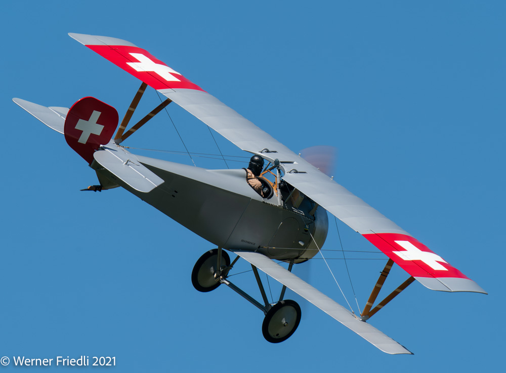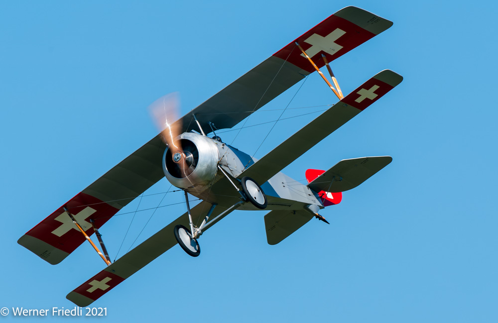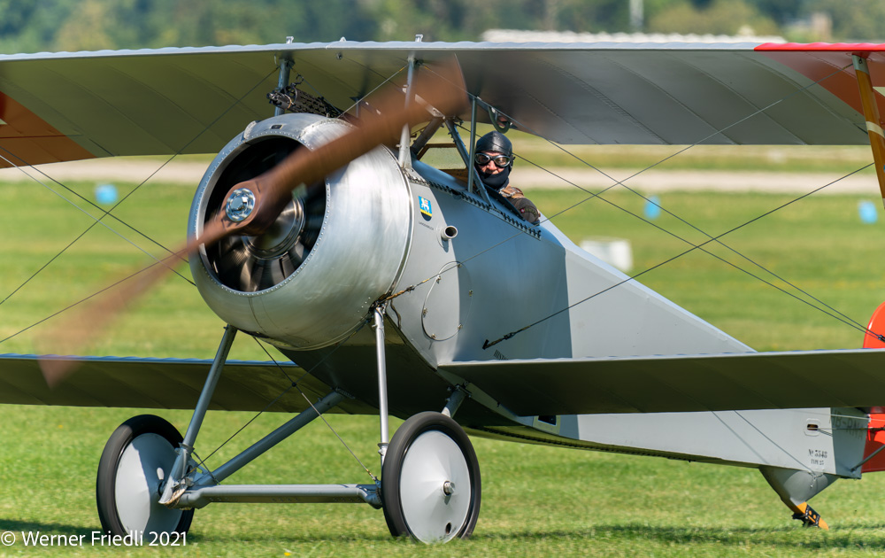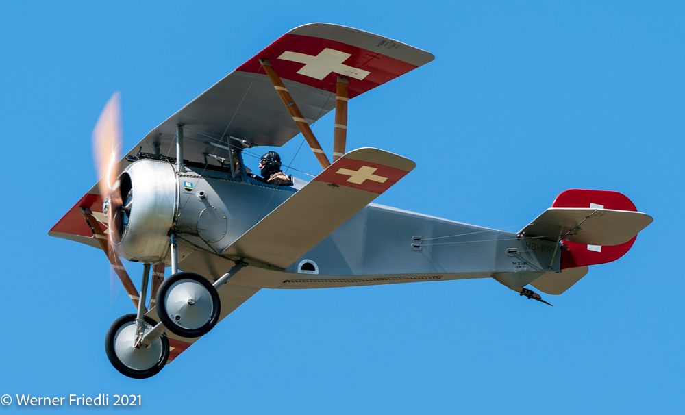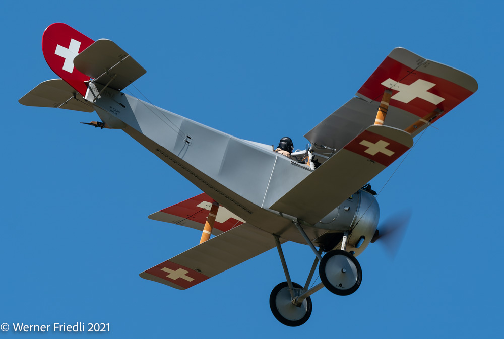 Einer der Höhepunkte der Air90 war der Flug der Nieuport 23 C-1, einer Replika aus dem Hause der Nieuport Memorial Flyers. Insgesamt sollen 3 dieser Replikas gebaut werden. Der Sound eines Umlaufmotors unterscheidet sich doch stark von normalen Kolbenmotoren. Entweder dreht der Motor mit Vollgas, oder der Pilot schaltet die Zündung aus. Dadurch entsteht eine besondere Geräuschkulisse. Die Maschine wurde durch Isidor von Arx gekonnt geflogen. Von diesen Flugzeugen wurden durch die Schweizer Fliegertruppen im Jahre 1917 fünf Stück beschafft. Damit ist die Nieuport 23 C-1 nun bezüglich der Konstruktion das älteste noch fliegende Exemplar eines Flugzeugs der Schweizer Fliegertruppen. Natürlich kein Original, wie die zwei noch fliegenden Dewoitine D.26, aber doch ein Nachbau, der dem Original alle Ehre macht.
