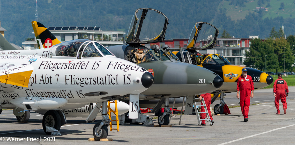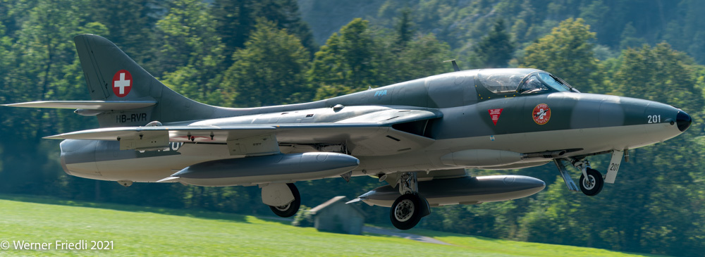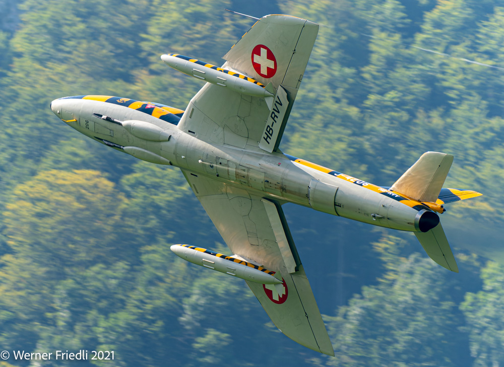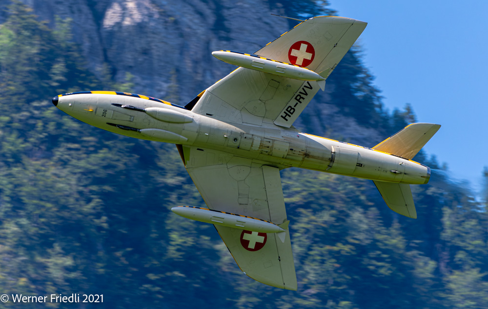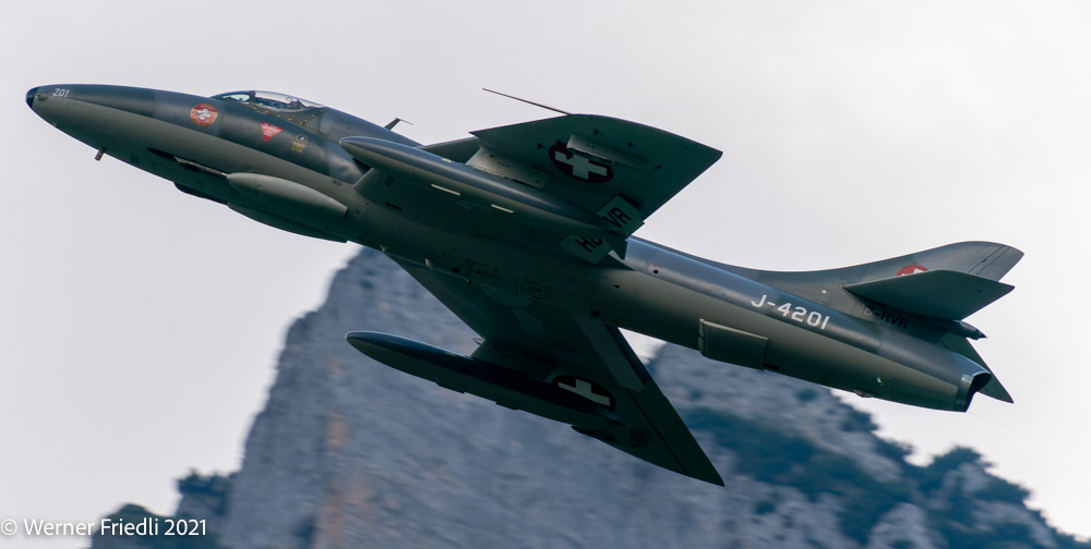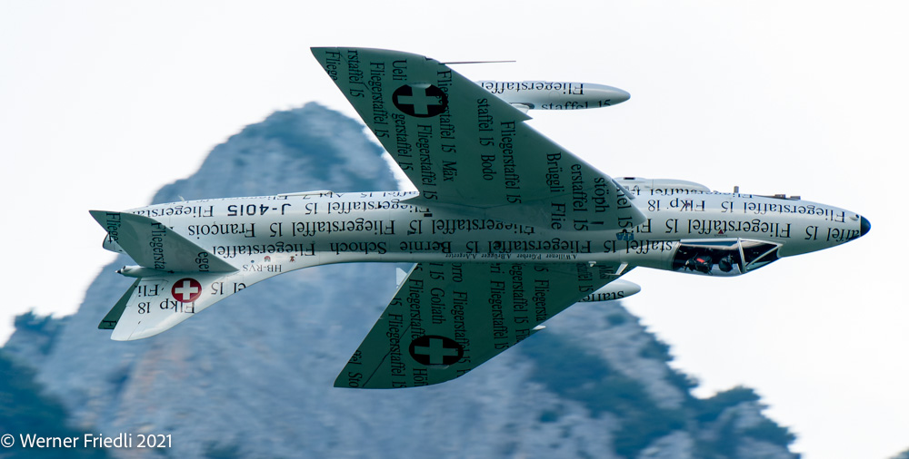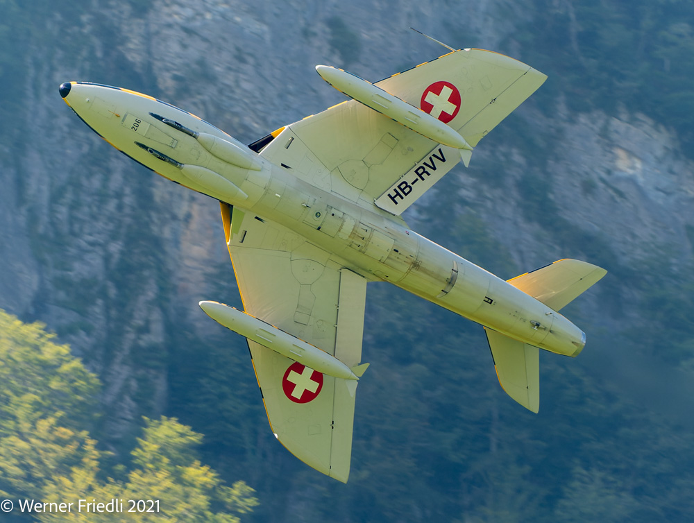 Am 3. und 4. September 2021 war es soweit, im Glarnerland flogen wieder die alten Jets der Schweizer Luftwaffe. Bereits 1994 wurden die Hawker Hunter ausser Dienst gestellt, ein paar Exemplare sind aber „flügge“ geblieben. Bis vor kurzem waren nicht weniger als sechs Hawker Hunter im Luftfahrt-Register des BAZL geführt. In der Zwischenzeit sind es nur noch drei Hunter und Ende Jahr dann leider nur noch zwei. Es fehlt an Sponsoren und qualifizierten Mechanikern.
