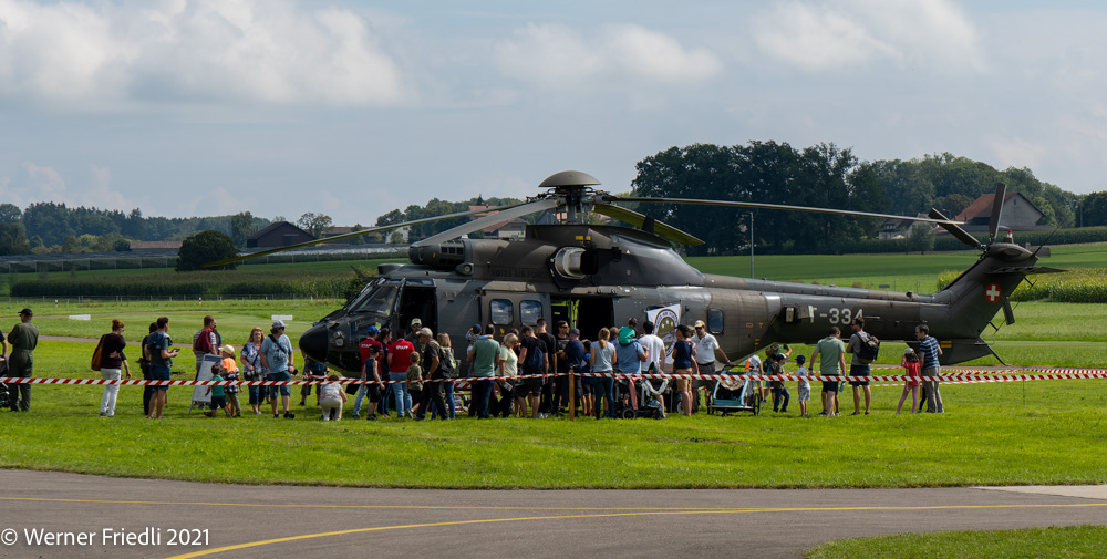 Nach dem Fotografieren der Oldtimer der Lüfte gönnte ich mir eine gute Bratwurst samt Bier. Während ich genüsslich die Bratwurst ass, sprach der Speaker plötzlich davon, dass nun der Cougar starte und auch das PC-7 Team bereits im Anflug sei.