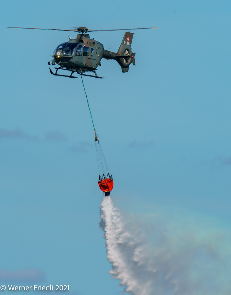 Sogar die Parallaxe stimmte, also standen die geladenen Gäste auch auf der Südseite des Flugplatzes und schauten nach Norden. Auch der Lufttransport mit Super Puma und EC-635 wurde demonstriert, inklusive Löschübung.