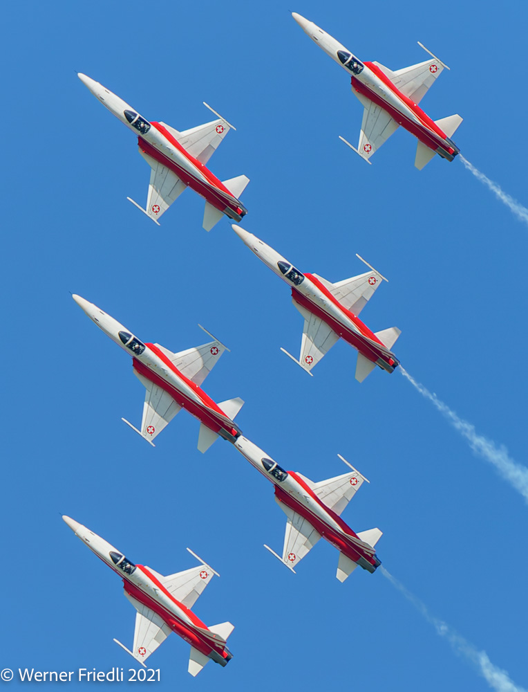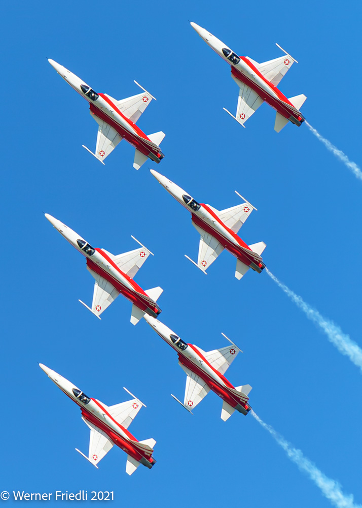 Die Patrouille Suisse zeigte ein vorzügliches Display. Wenigstens in diesem Verband ist der Northrop F-5 Tiger II noch präsent!