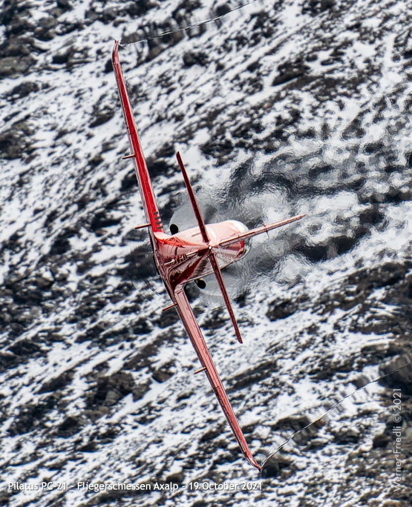 Erst gegen 10 Uhr trainierte der PC-21 sehr ausgiebig über der Ebenfluh, am Steuerknüppel Daniel Stämpfli , Nickname «Stampa». Daniel Stämpfli war früher Leader der Patrouille Suisse und ist aktuell Kommandant des PC-7 Teams.