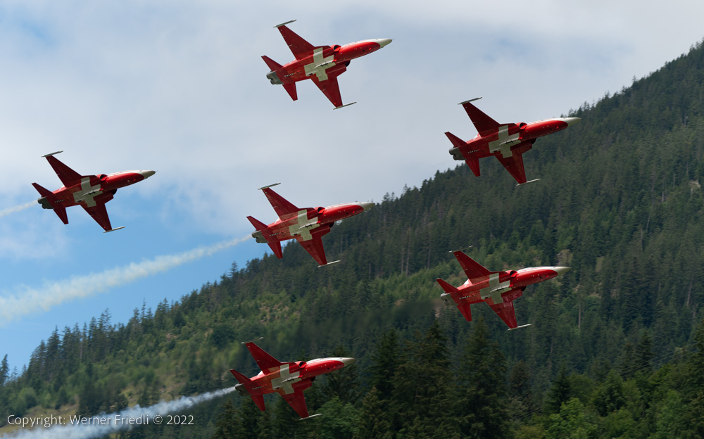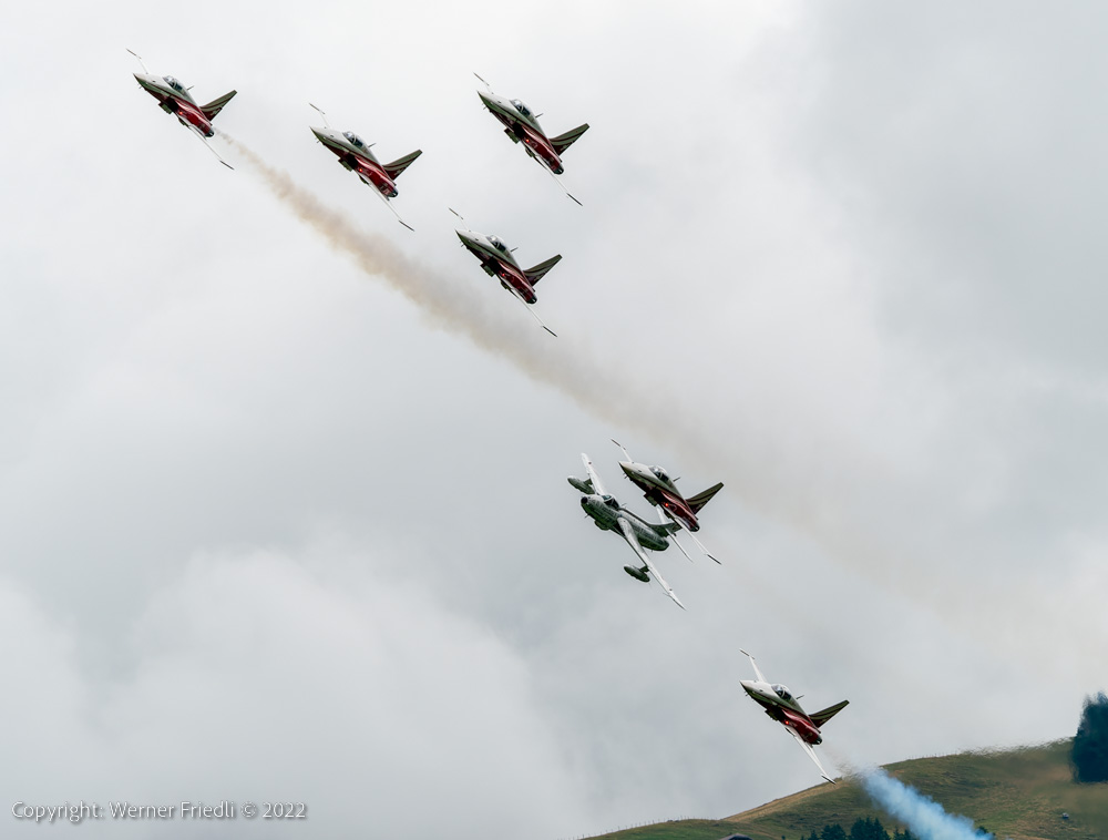 Daneben war ein weiteres Mal die Classic Formation vor Ort und die Patrouille Suisse gab auch ohne Training eine ordentliche Visitenkarte ab im Berner Oberland.