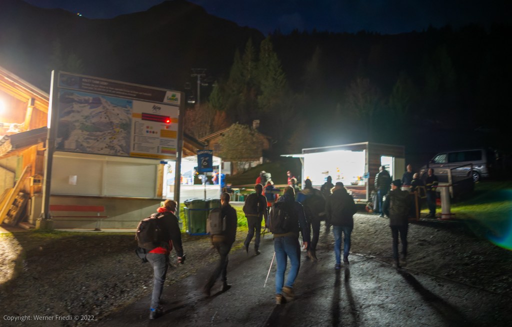 Auf die Fahrt mit dem Sessellift verzichtete ich, im Wissen darum, das vor 9 Uhr kaum Flugbetrieb herrschen würde, mit Ausnahme der Materialtransporte durch die Helikopter.