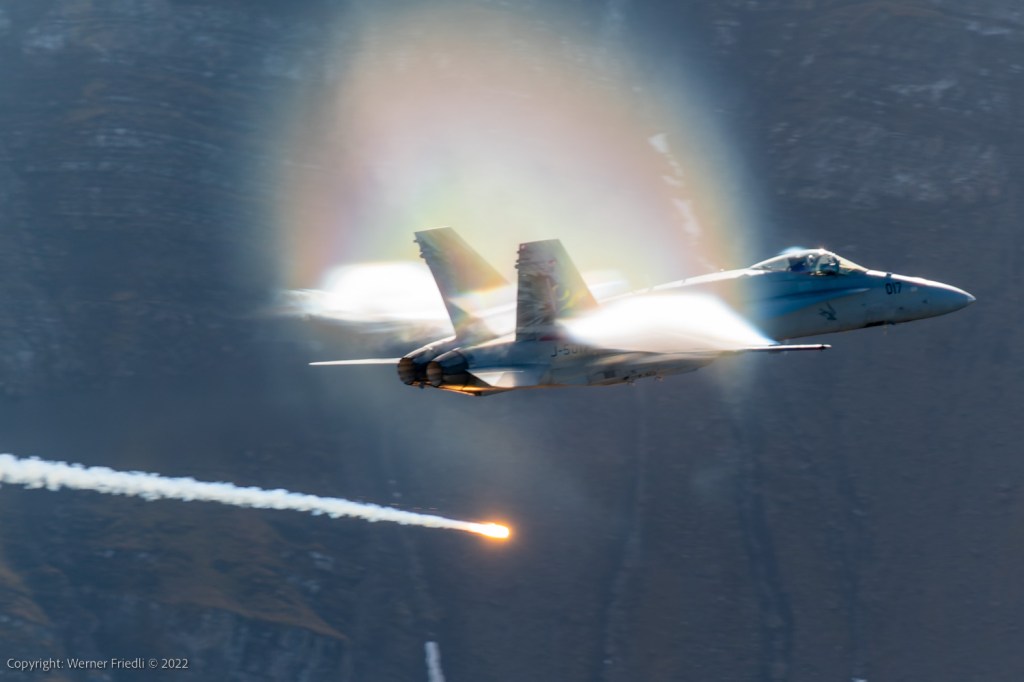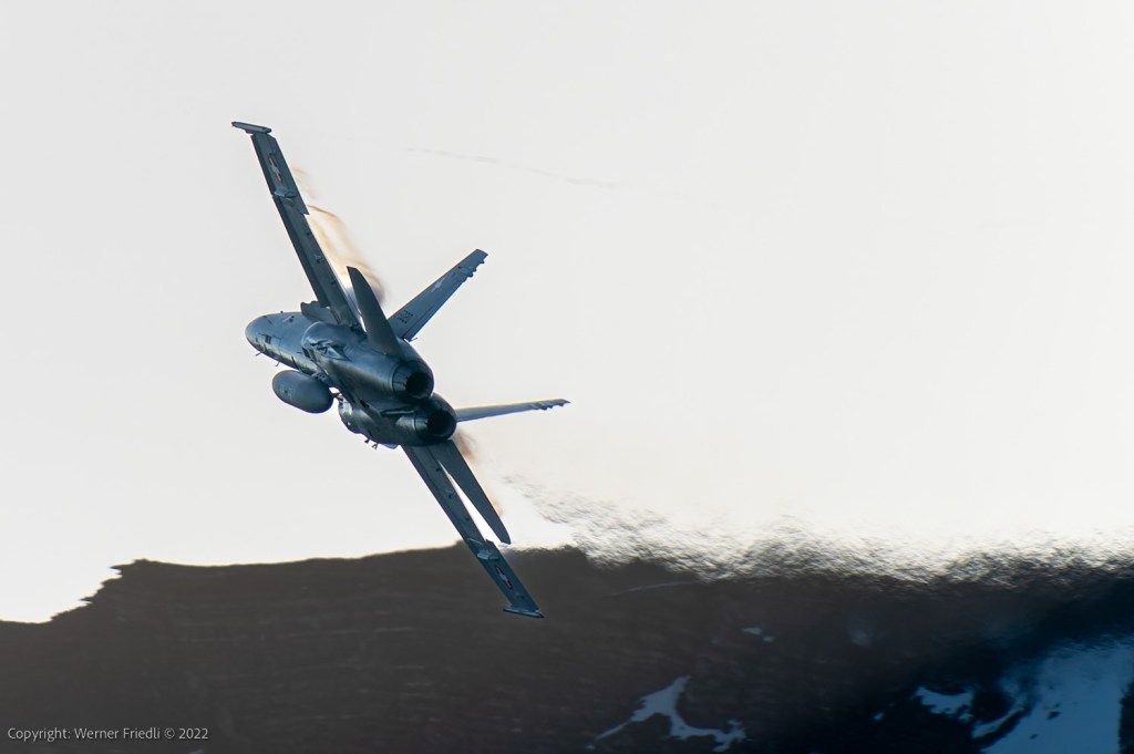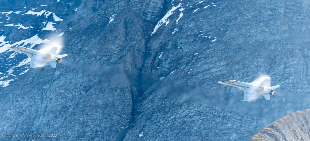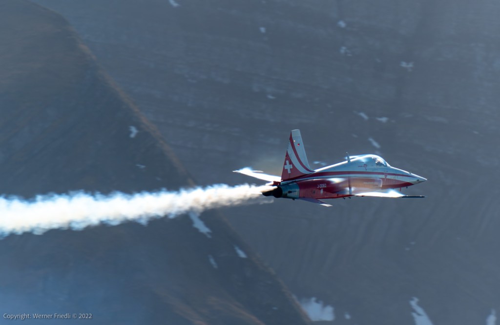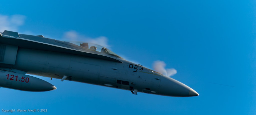 Nach den üblichen 10 Minuten Vorführung war die Speicherkarte bereits mit ca. 800 Fotos gut gefüllt, wobei beim High Speed Pass der ersehnte Verdichtungsstoss perfekt sichtbar war. Das Licht war dabei auch auf meiner Seite, den um diese Zeit wird die Sonne noch durch den Wildgärst verdeckt. Das starke Gegenlicht war also noch nicht präsent.