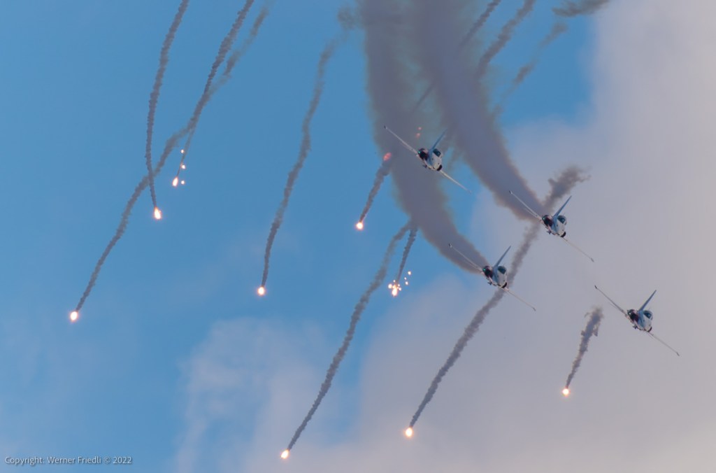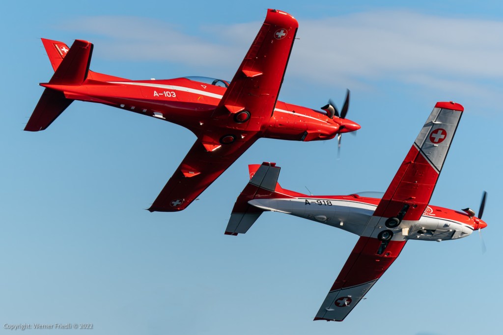 Danach zeigte sich die Pilatus PC-21, zuerst alleine und dann im Verbund mit einer Pilatus PC-7, und ich schaltet innerlich bereits ein wenig ab. Das war aber ein schwerer Fehler, denn was die beiden Piloten boten, war vom Allerfeinsten.