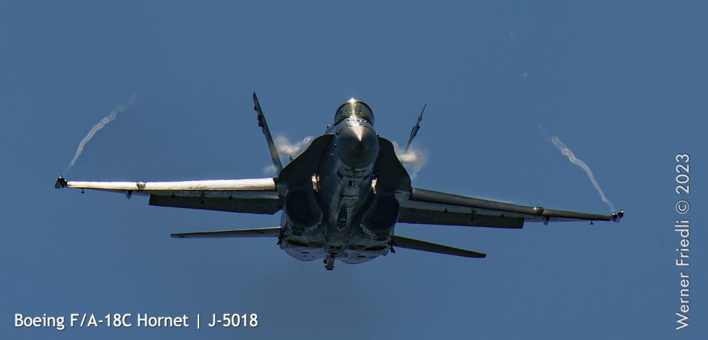 Am 9. Juni 2023 trainierte das F/A-18 Hornet Display Team wieder in Grenchen. Als regelmässiger Besucher dieser Trainings in Grenchen war der grosse Andrang der Schaulustigen augenfällig.