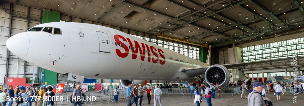 Neben den dort abgestellten Maschinen waren vor allem auch die futuristischen Hallen ein echter Hingucker. Dazu konnte man einer Boeing Triple Seven der Swiss in der Werft ganz nahe kommen.
