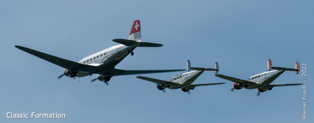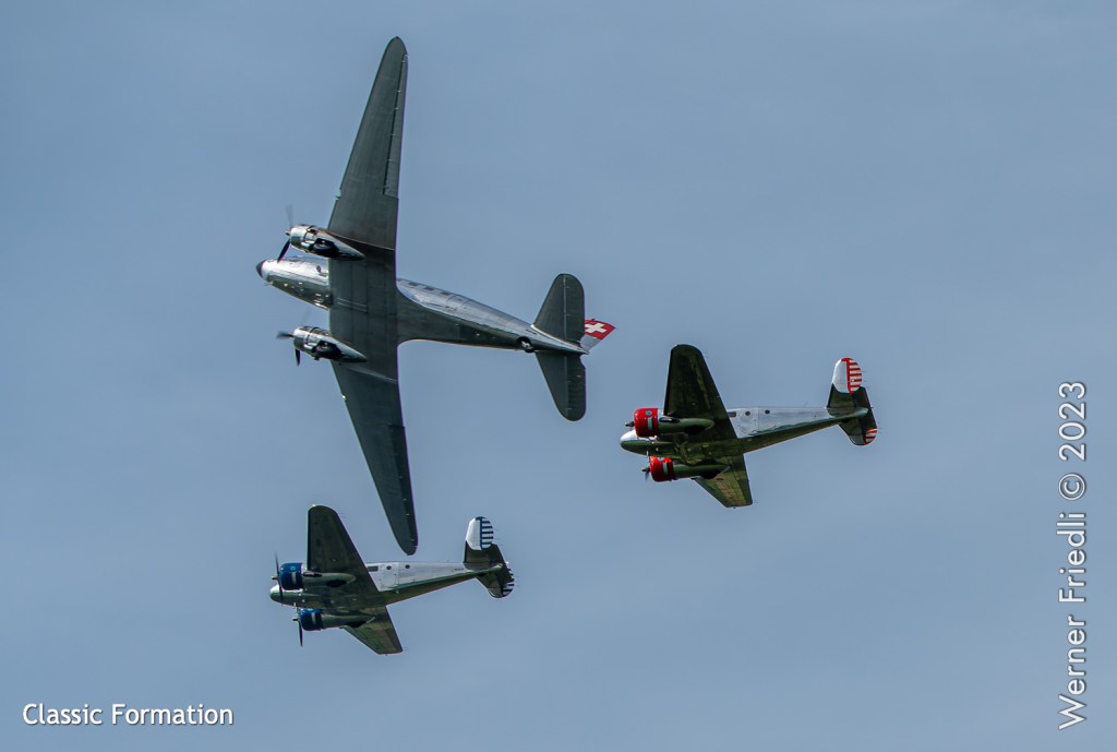 Die Classic Formation aus Grenchen ist bereits ein schon fast obligater Gast an Schweizer Airshows. Leider hatte eine Beech 18 technische Probleme, so dass das Team nur mit drei Maschinen auftrat.