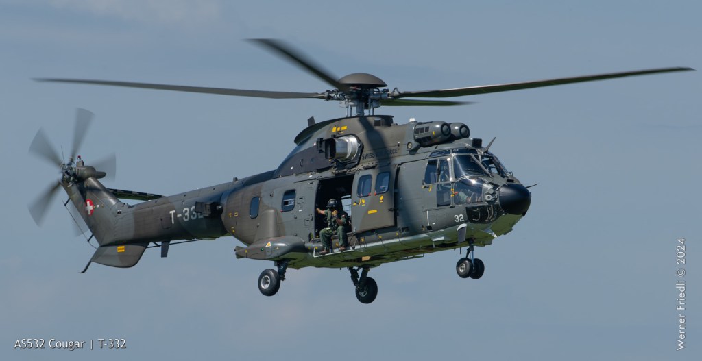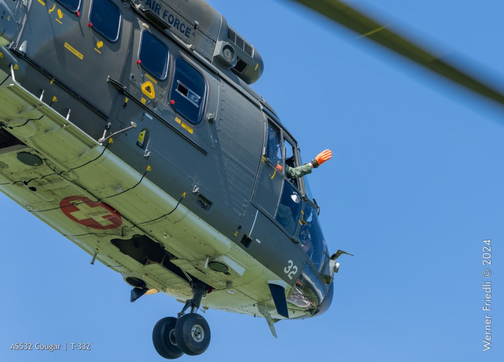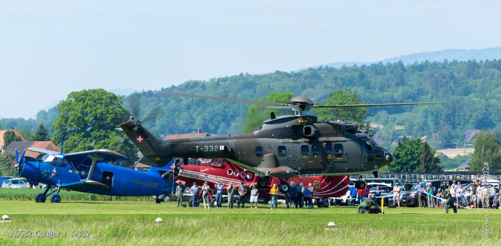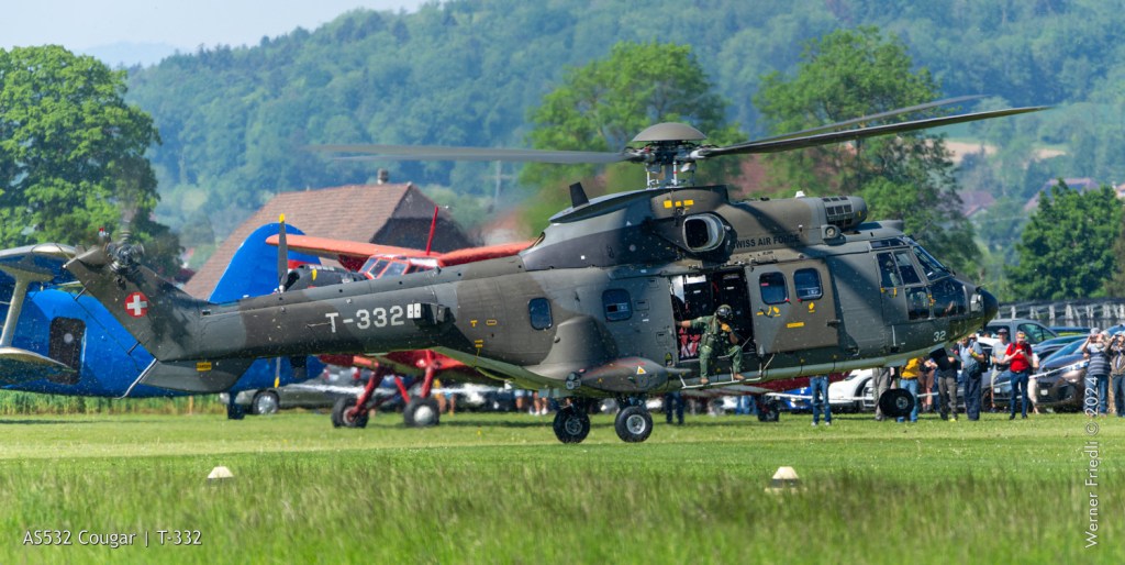 Gekommen sind hauptsächlich Maschinen, die bei den Schweizer Fliegertruppen ihren Dienst leisteten. Einzig der Cougar (T-332) des Super Puma Display Teams repräsentierte die aktuelle Schweizer Luftwaffe.
