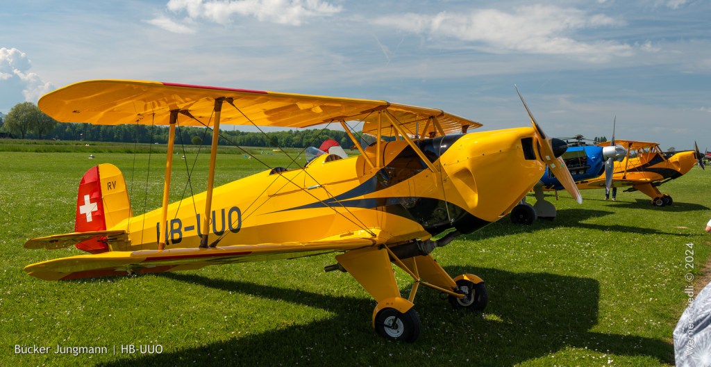 26 Flugzeuge konnte ich in meinem Logfile vermerken, davon allein 9 Bücker Jungmann. Wäre das Treffen nicht anders ausgeschrieben worden, hätte man auch von einem Bücker-Treffen sprechen können.