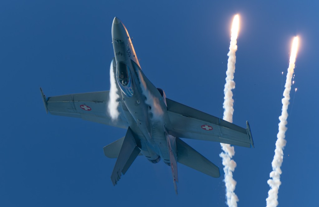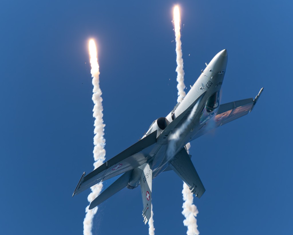 Ich begab mich daher auf den Seedamm und konnte so einige schöne Bilder der Maschinen machen. Vor allem der grosse Einsatz von Flares verleiht den Bildern das gewisse Etwas.