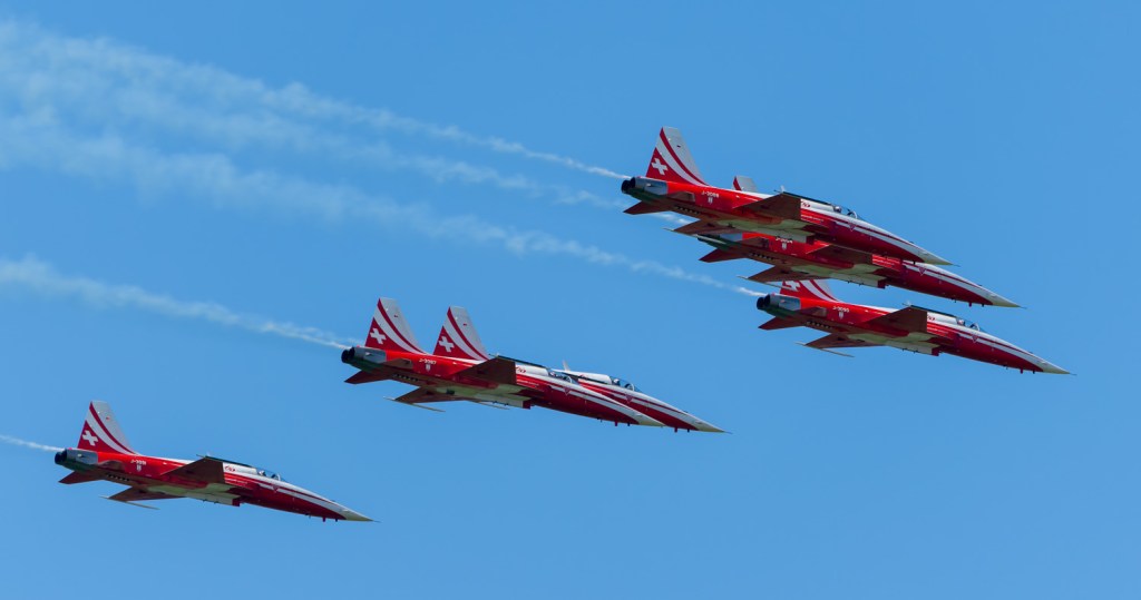 Die Patrouille Suisse gewann am Royal International Air Tattoo (UK) den King Hussein Memorial Sword Award für die beste Flugvorführung. Die Patrouille Suisse feiert 2024 ihr 60-jähriges Bestehen.
