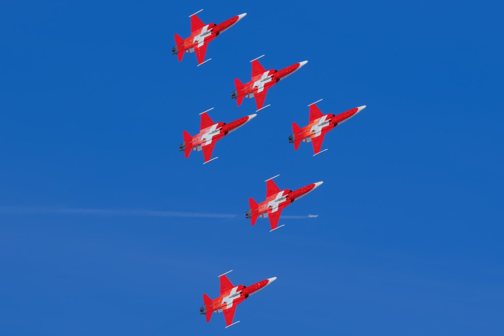 Die Vorführung der Patrouille Suisse war gewohnt präzise und dem Gelände angepasst.