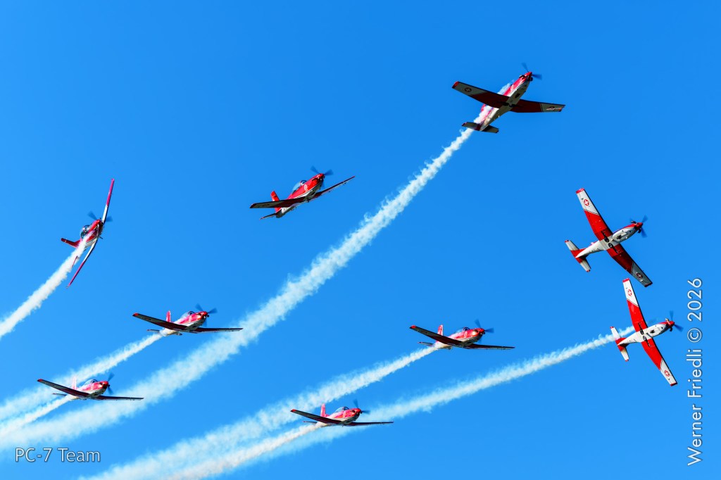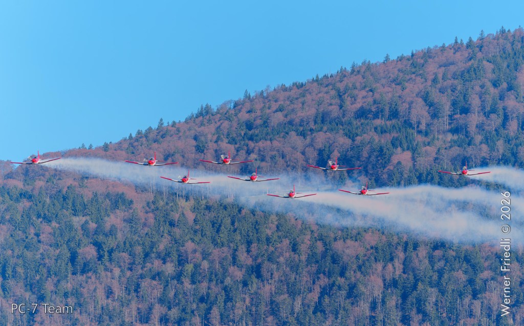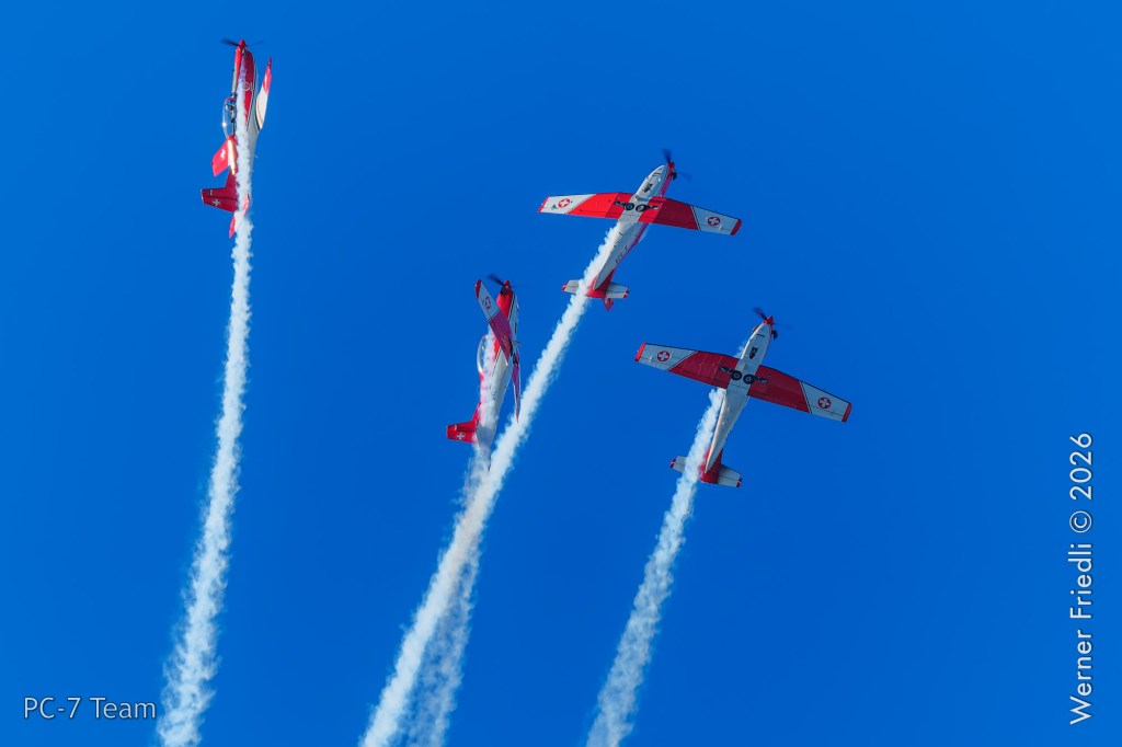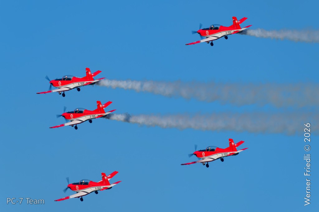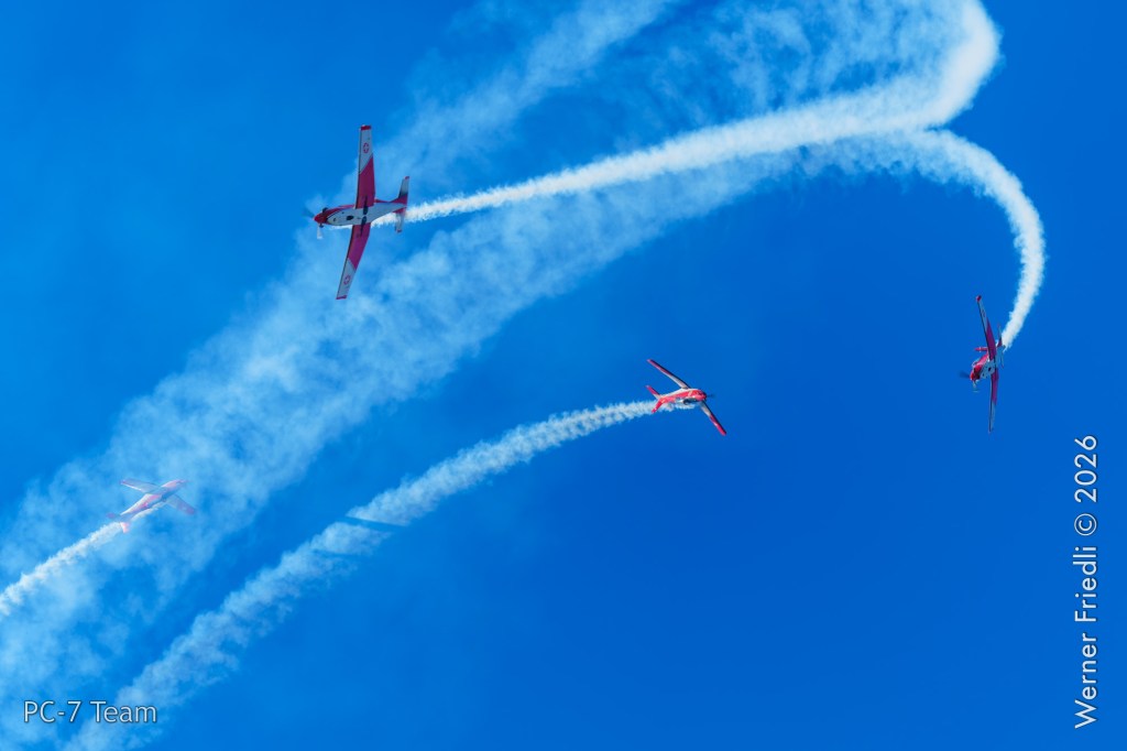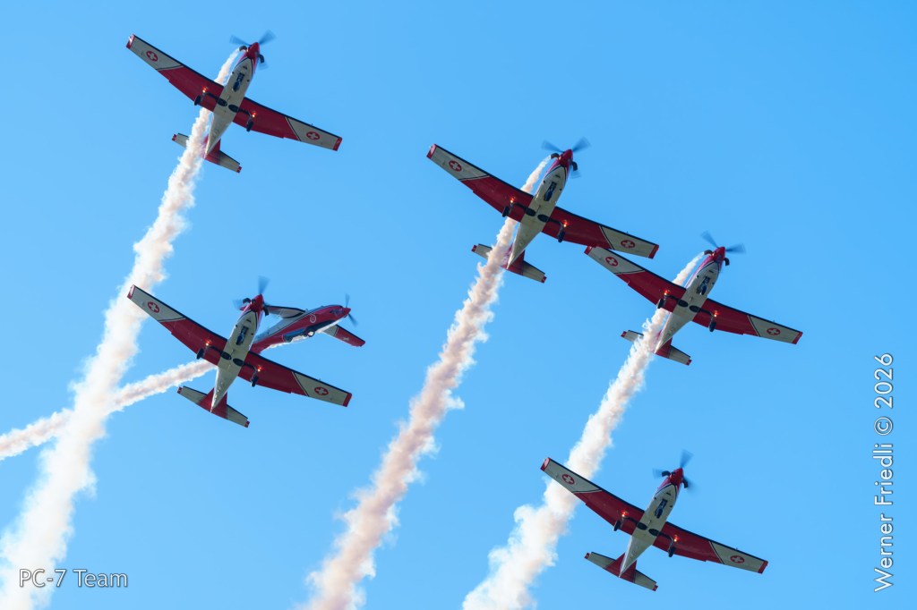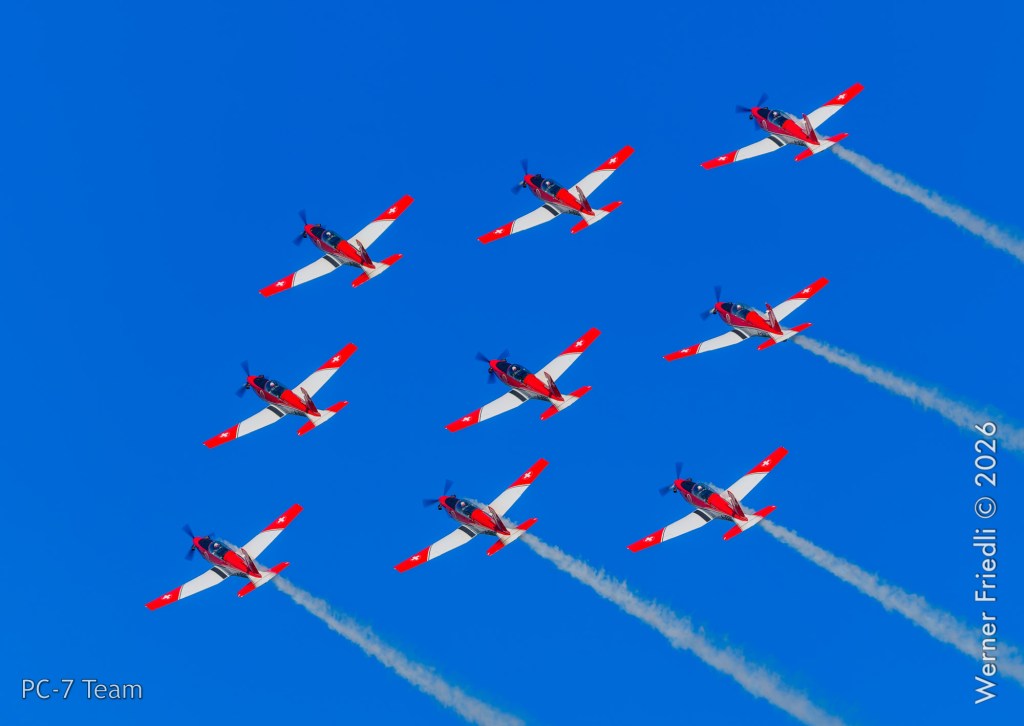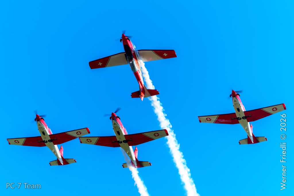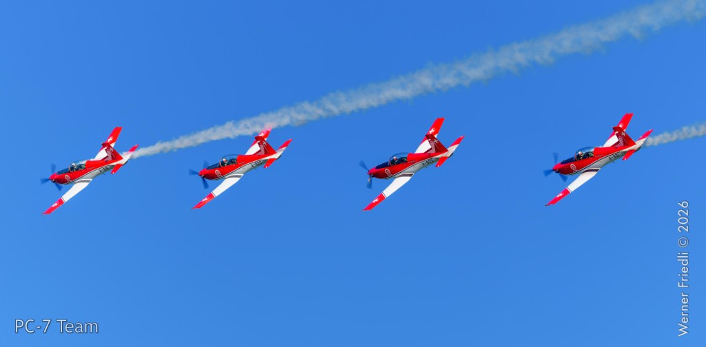 Am Mittwoch, 8. April 2026, zeigte das PC-7 Team der Schweizer Luftwaffe ab 8:45 Uhr ein Display über dem Airport Grenchen. Diese Vorführung wurde im Rahmen des Trainings zur Vorbereitung auf die Airshow-Saison geflogen.