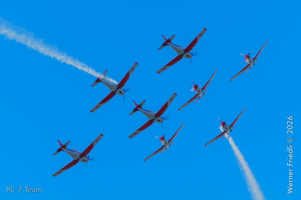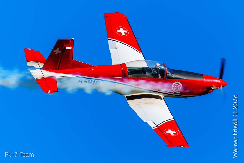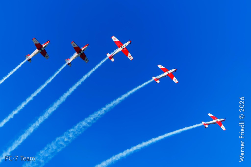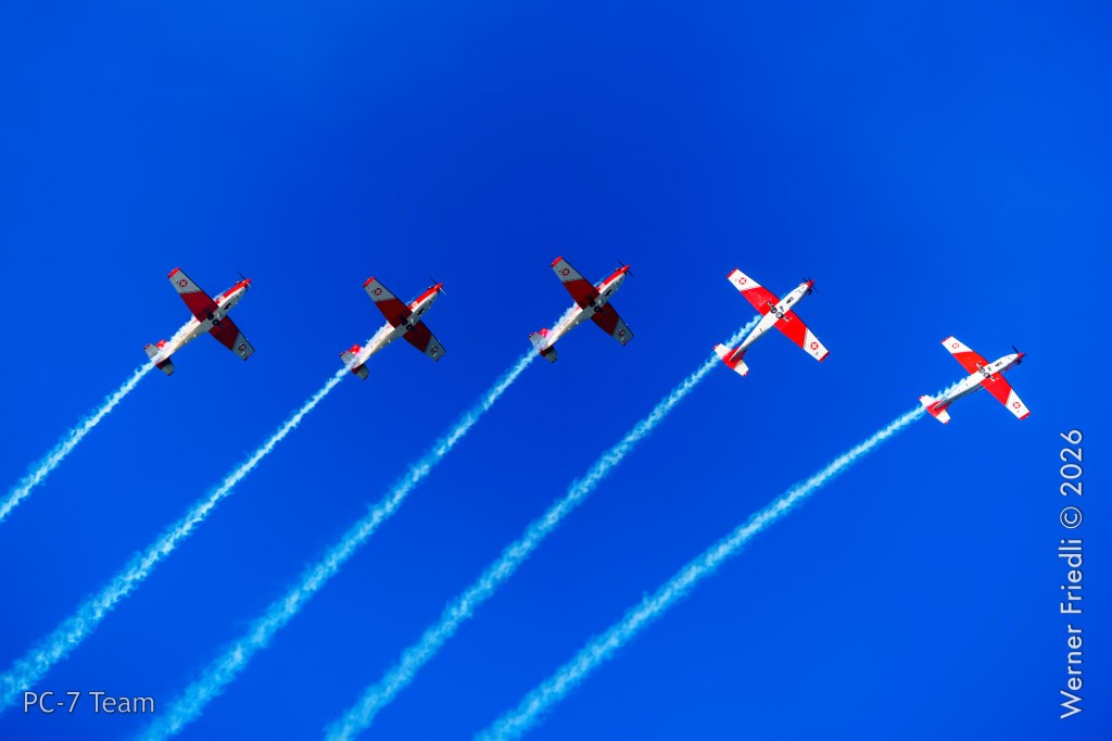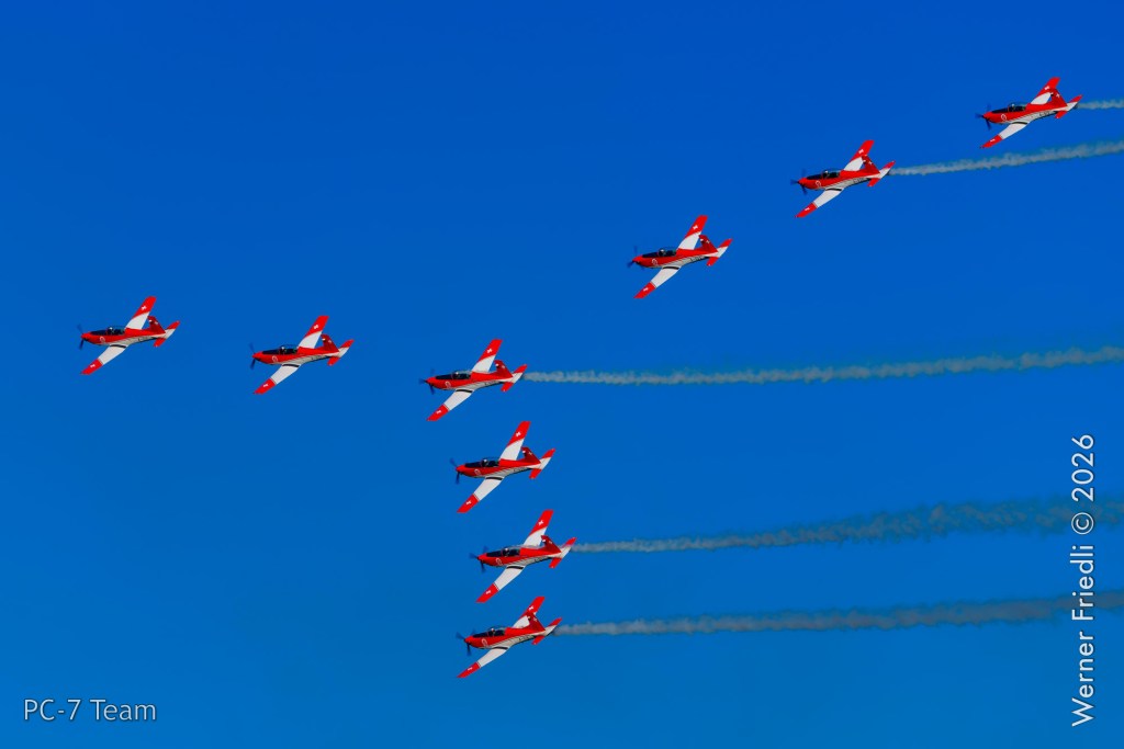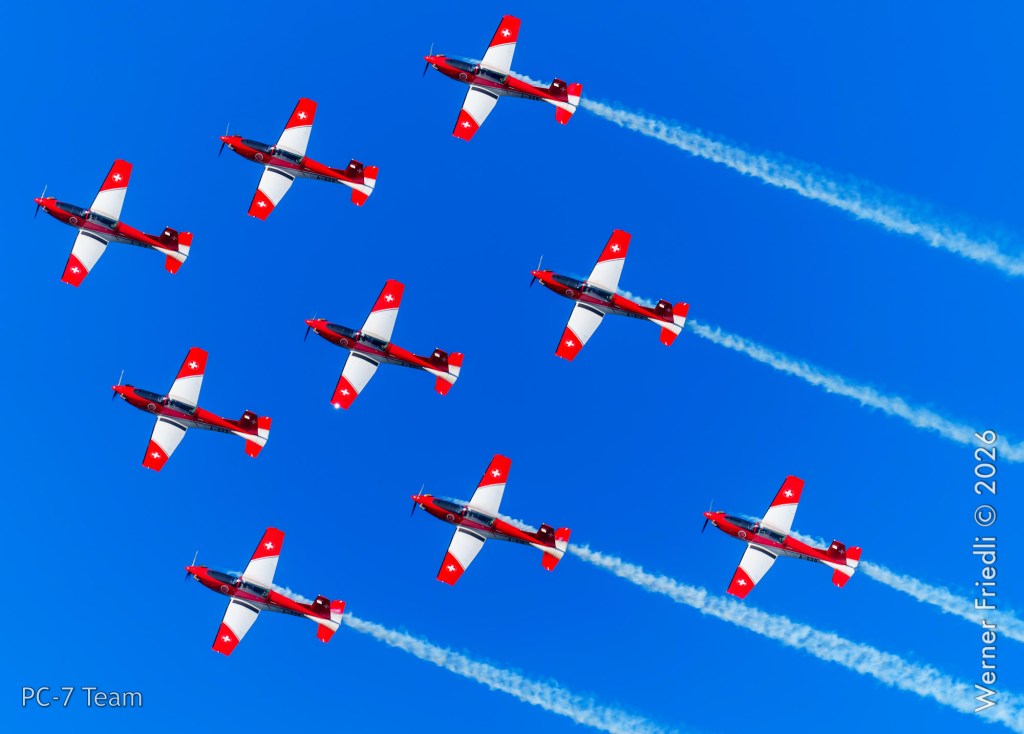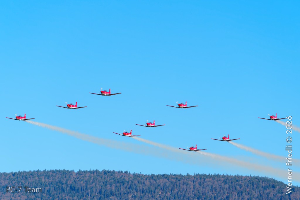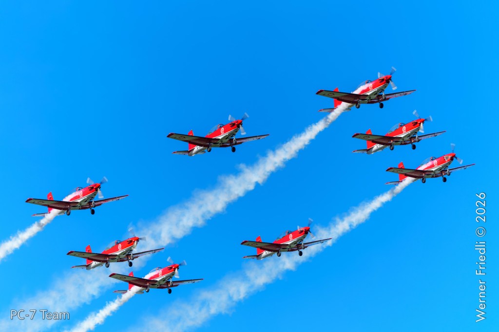 Am Mittwoch, 8. April 2026, zeigte das PC-7 Team der Schweizer Luftwaffe ab 8:45 Uhr ein Display über dem Airport Grenchen. Diese Vorführung wurde im Rahmen des Trainings zur Vorbereitung auf die Airshow-Saison geflogen.