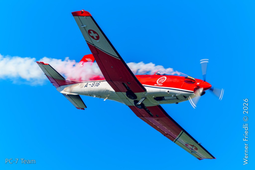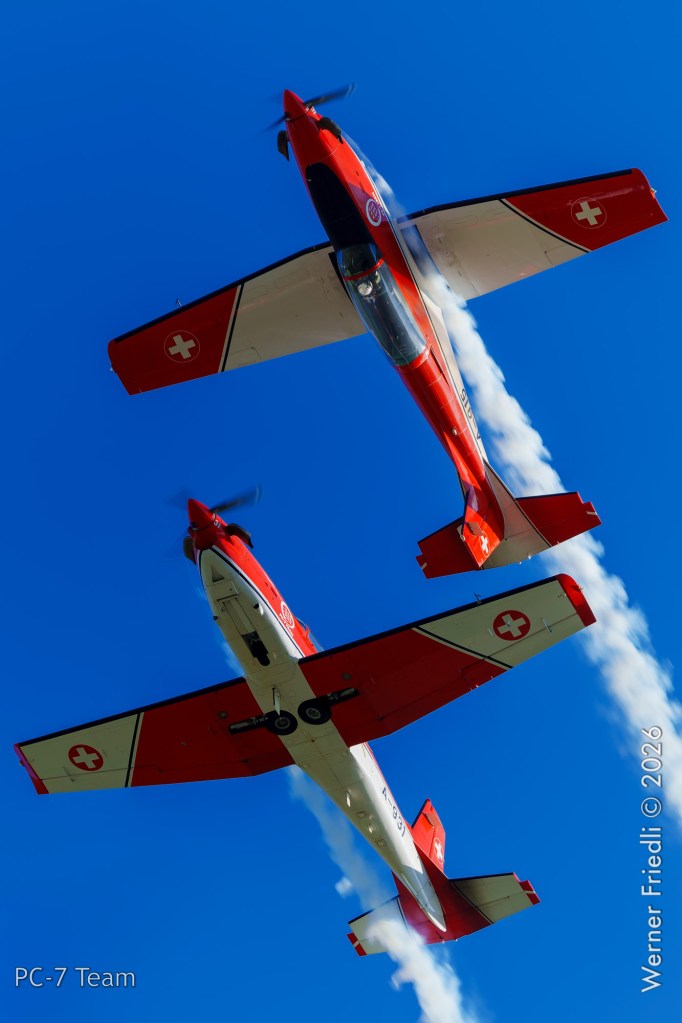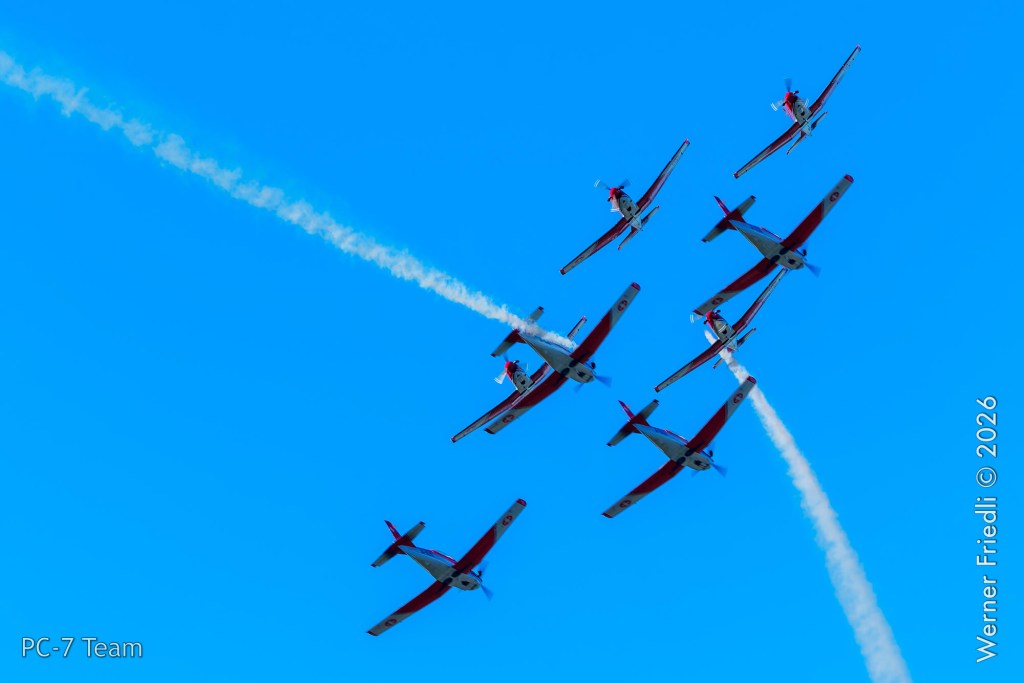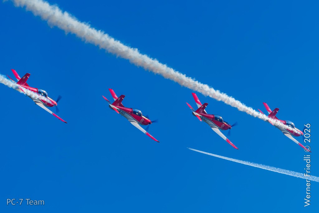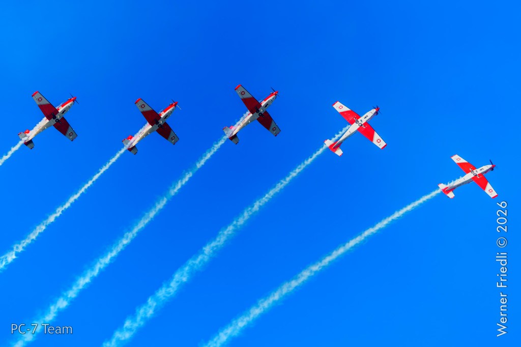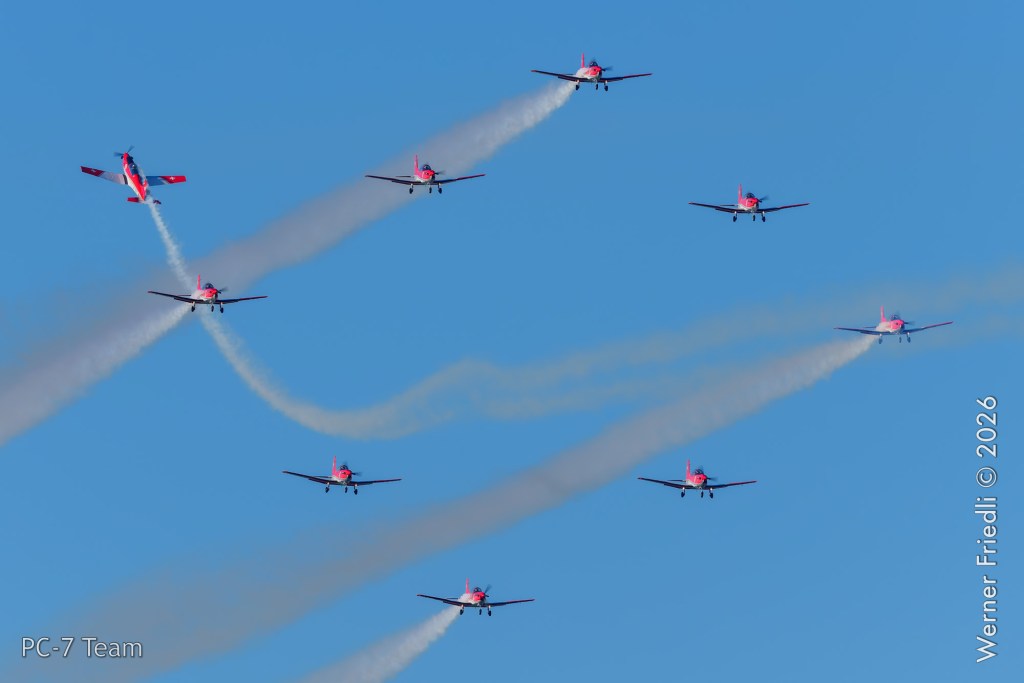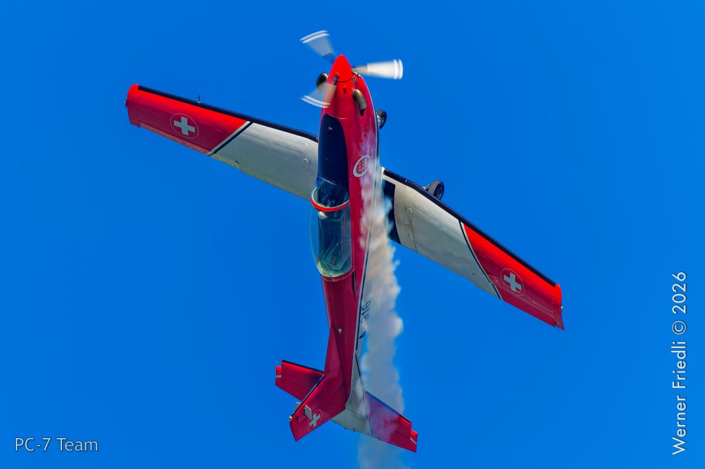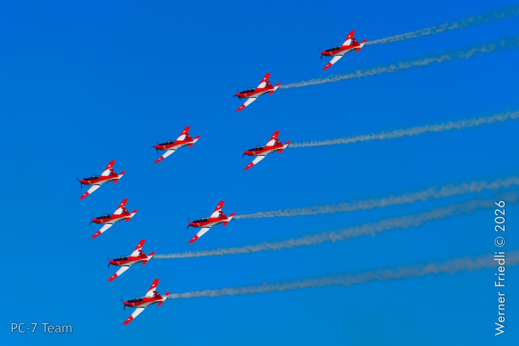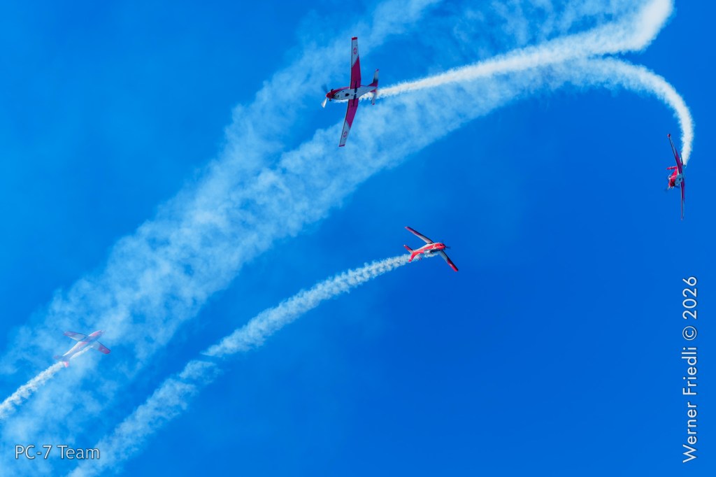 Am Mittwoch, 8. April 2026, zeigte das PC-7 Team der Schweizer Luftwaffe ab 8:45 Uhr ein Display über dem Airport Grenchen. Diese Vorführung wurde im Rahmen des Trainings zur Vorbereitung auf die Airshow-Saison geflogen.