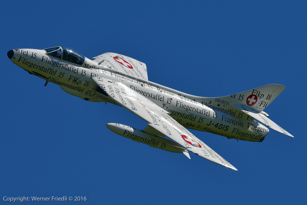 Insgesamt drei Hawker Hunter und zwei de Havilland Vampire waren am Boden und in der Luft zu sehen. Dazu kam noch ein Hawker Hunter der Dutch Hawker Hunter Foundation in den Farben der niederländischen Luftwaffe.